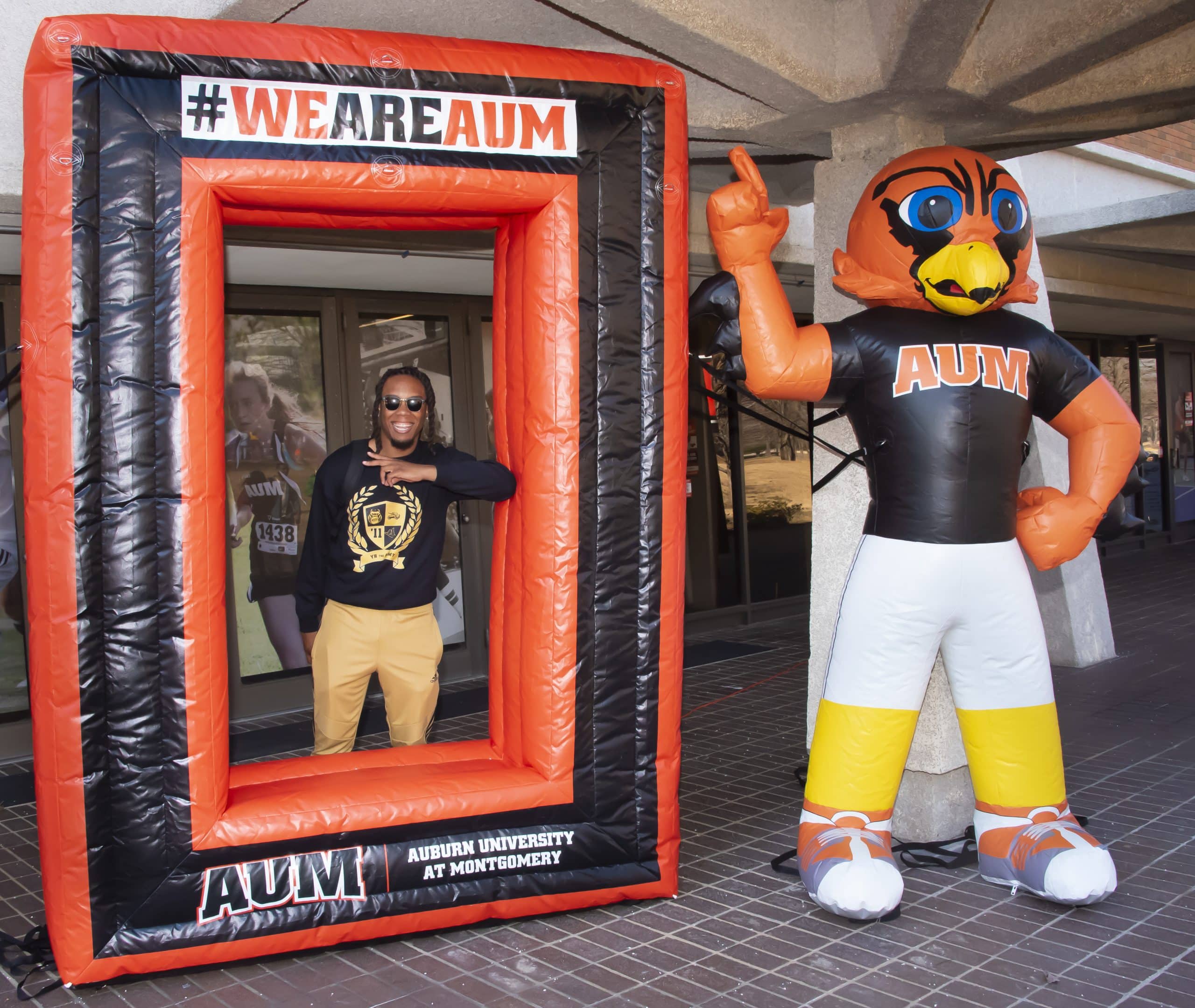 You can’t have a party without Curtiss The Warhawk, Auburn University at Montgomery’s feathered mascot. Officially introduced on February 2, 2012, and named by the student body, Curtiss is a fixture at AUM campus events and has distinguished himself as one of the nation’s top college mascots. AUM students voted to name him after the Curtiss P-40, a World War II-era aircraft, as a way to honor Montgomery’s aviation history. For more information about Curtiss the Warhawk, contact Student Involvement at studentinvolvment@aum.edu.
